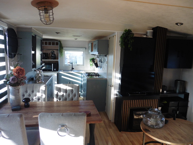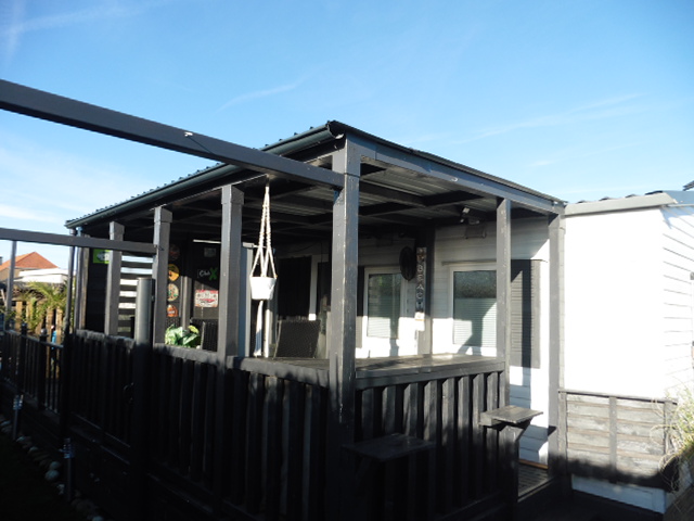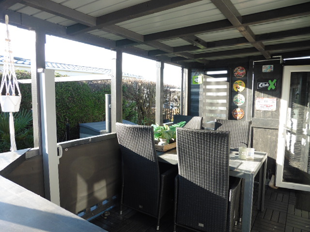 Deze stacaravan heeft een afmeting van 8.60 x 3.70 meter en is voorzien van een leuke overkapte veranda van ongeveer 10 m2.