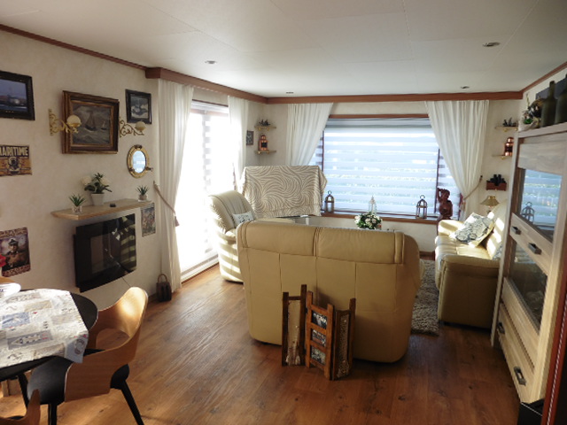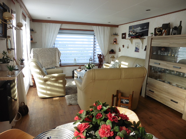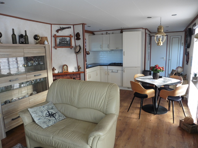 Dit ruime en lichte L-chalet heeft een afmeting van 11.00 x 3.60 bij 4.50 x 3.60 meter en is mooi gelegen op een ruime plek op pad 14.