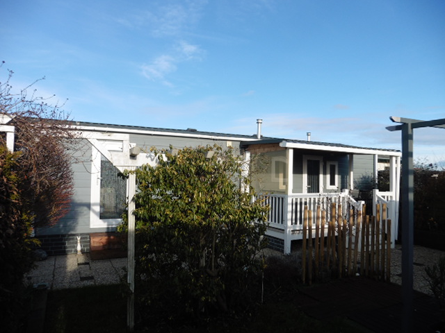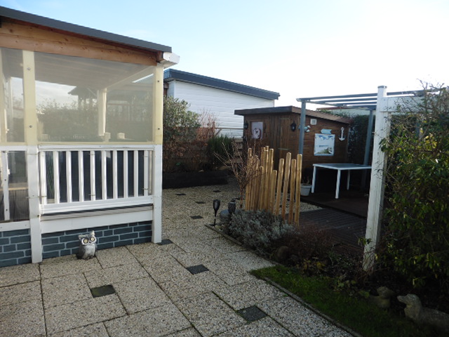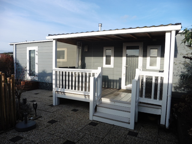 Het chalet heeft een mooie kunststof veranda en is overdekt.